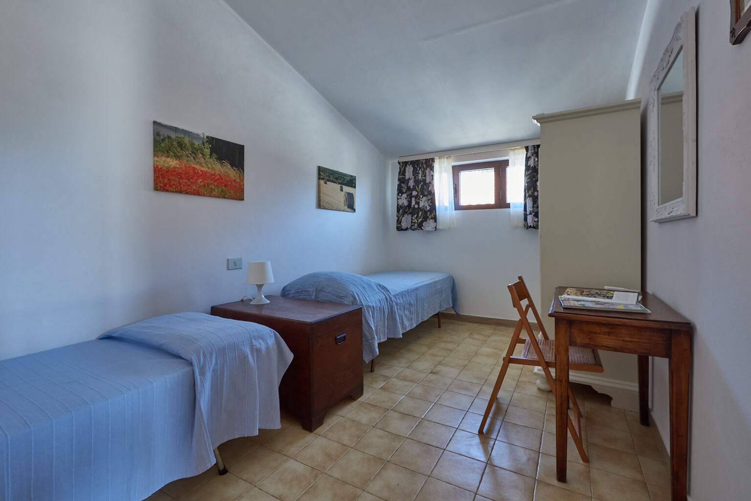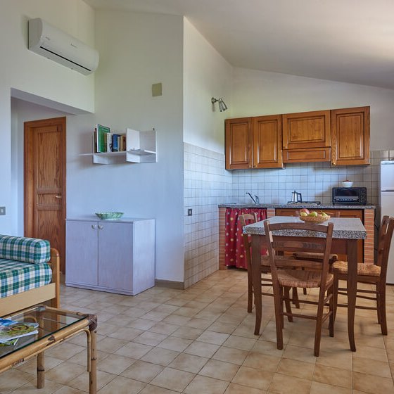Lägenheten består av ett sovrum med dubbelsäng, ett sovrum med 2 enkelsängar, badrum med dusch och ett vardagsrum med bäddsoffa och fullt utrustat kök. Det finns plats för upp till 5 personer då bäddsoffan ger en extra sovplats. Finns bord och stolar i trädgården så man kan äta ute, möjlighet att grilla antingen i trädgården eller på den allmäna grillplatsen med härlig utsikt. Lägenheterna passar också bra för grupper eller om man reser med andra familjer så man kan bo nära varandra.